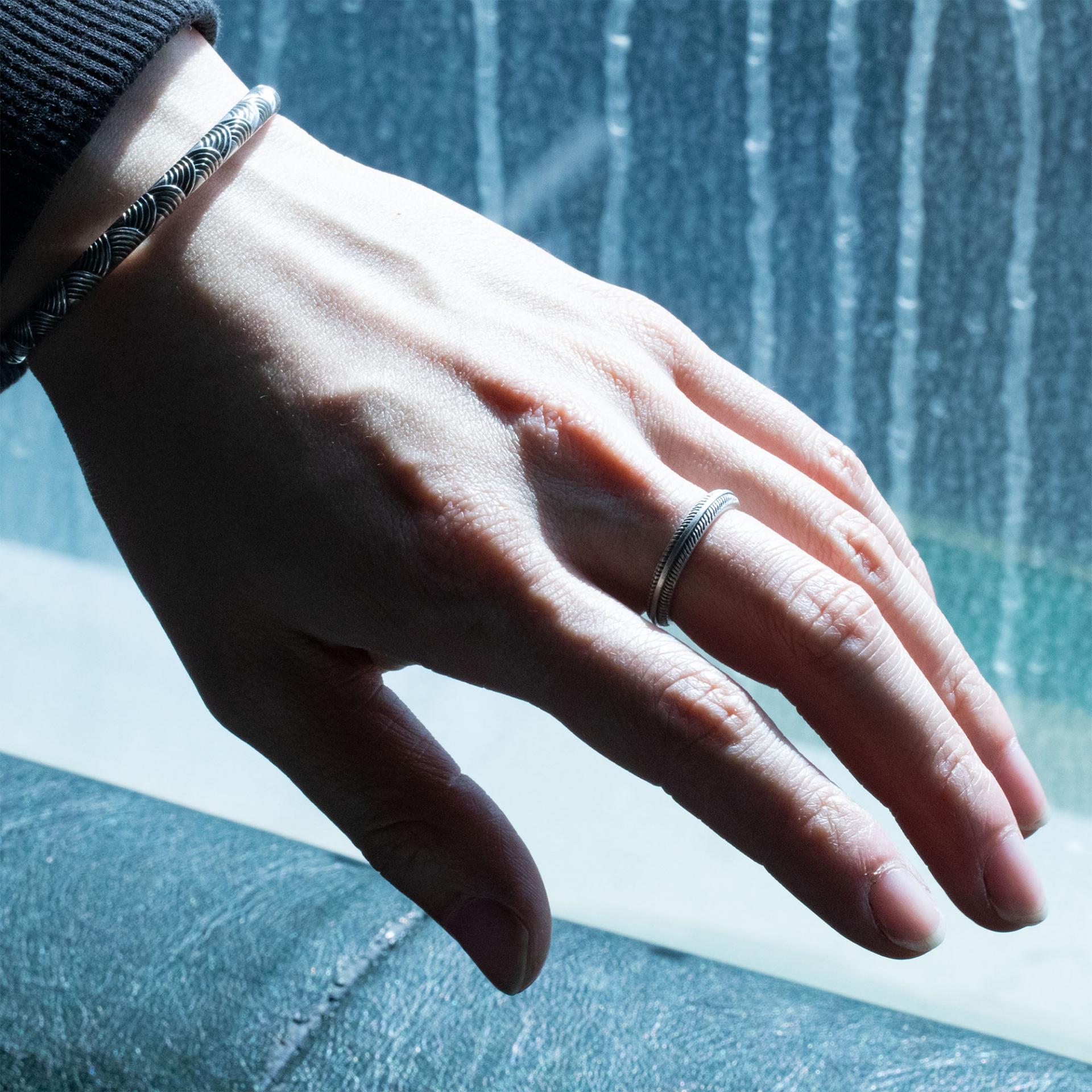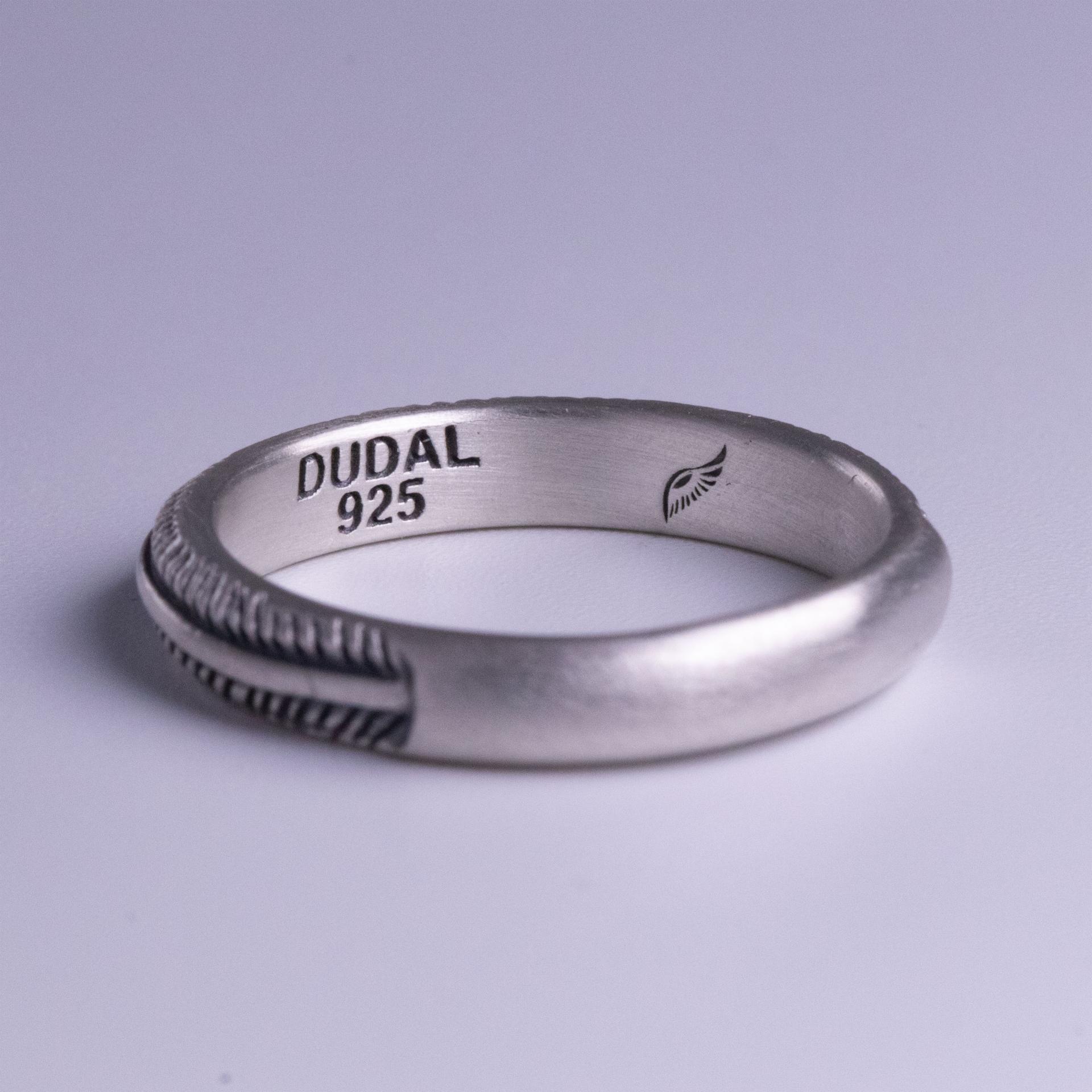 패턴이 촘촘하게 새겨진 디테일이 돋보이면서도, DUDAL의 반지들 중 가볍고 심플한 스타일로 제작되었습니다.