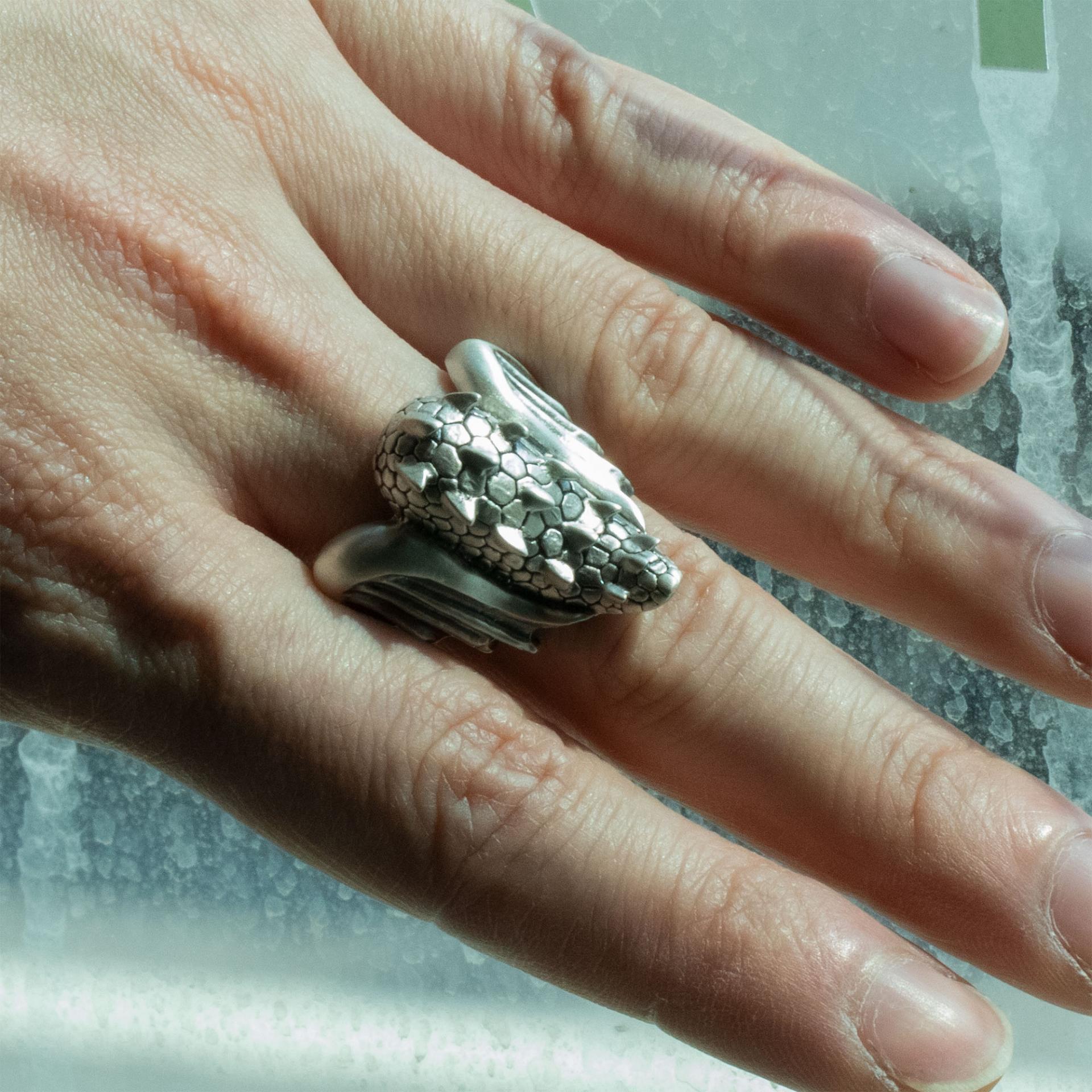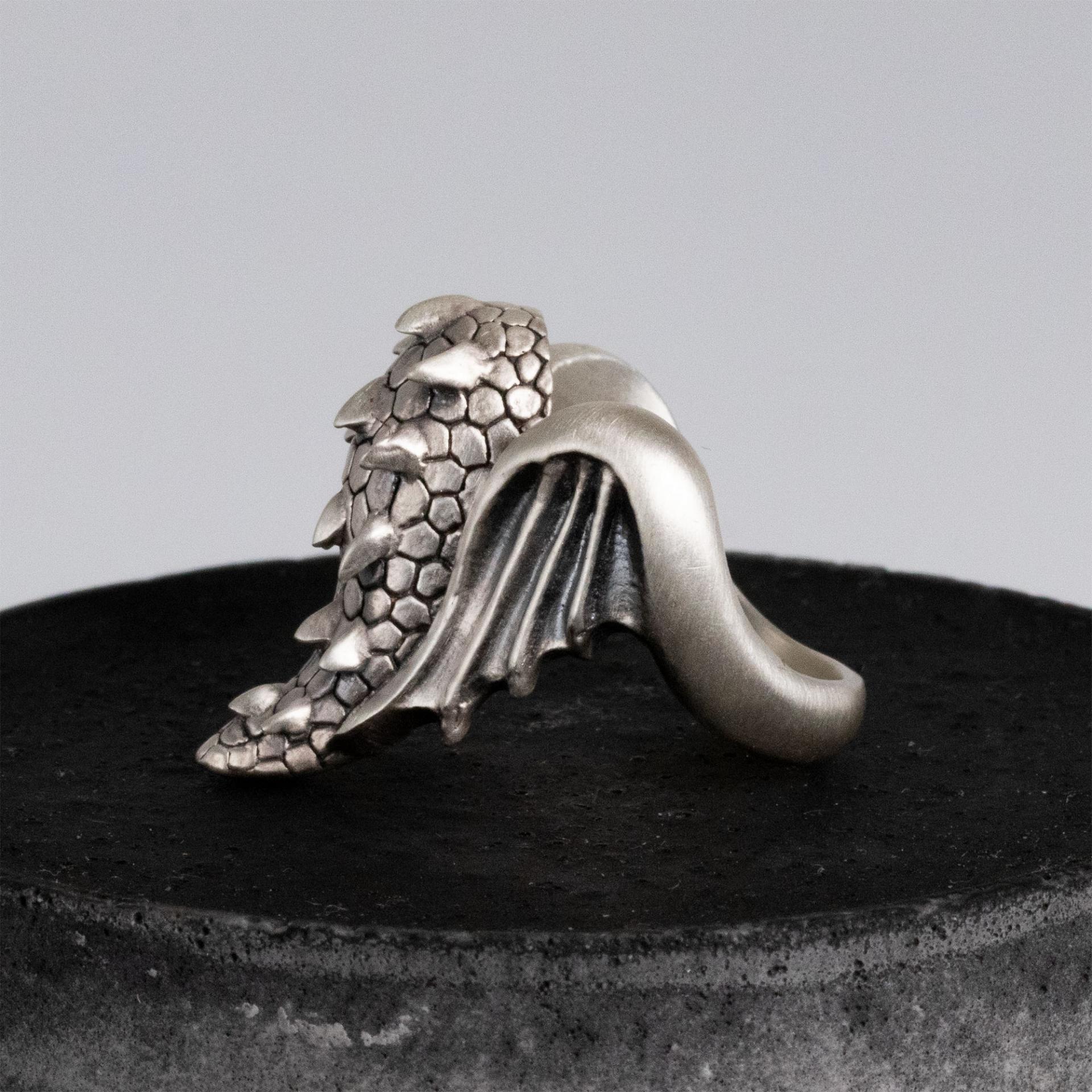 이 반지는 용의 꼬리를 중심으로, 양쪽 날개가 이를 받쳐주는 대칭적 구조로 설계되었습니다.