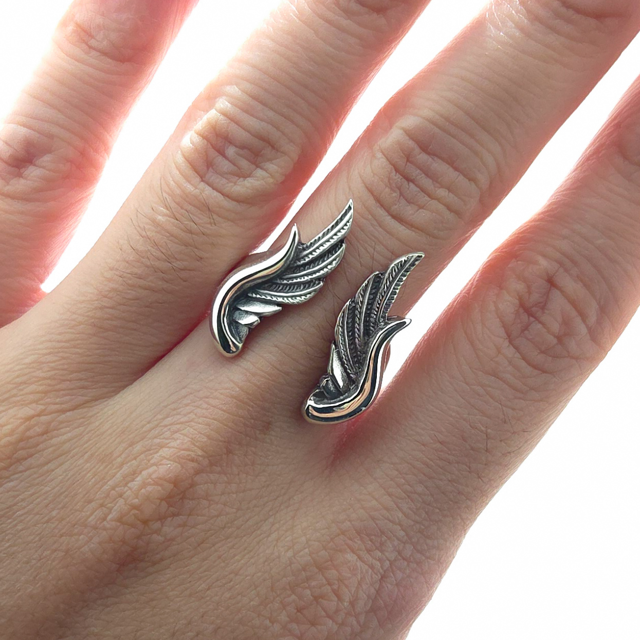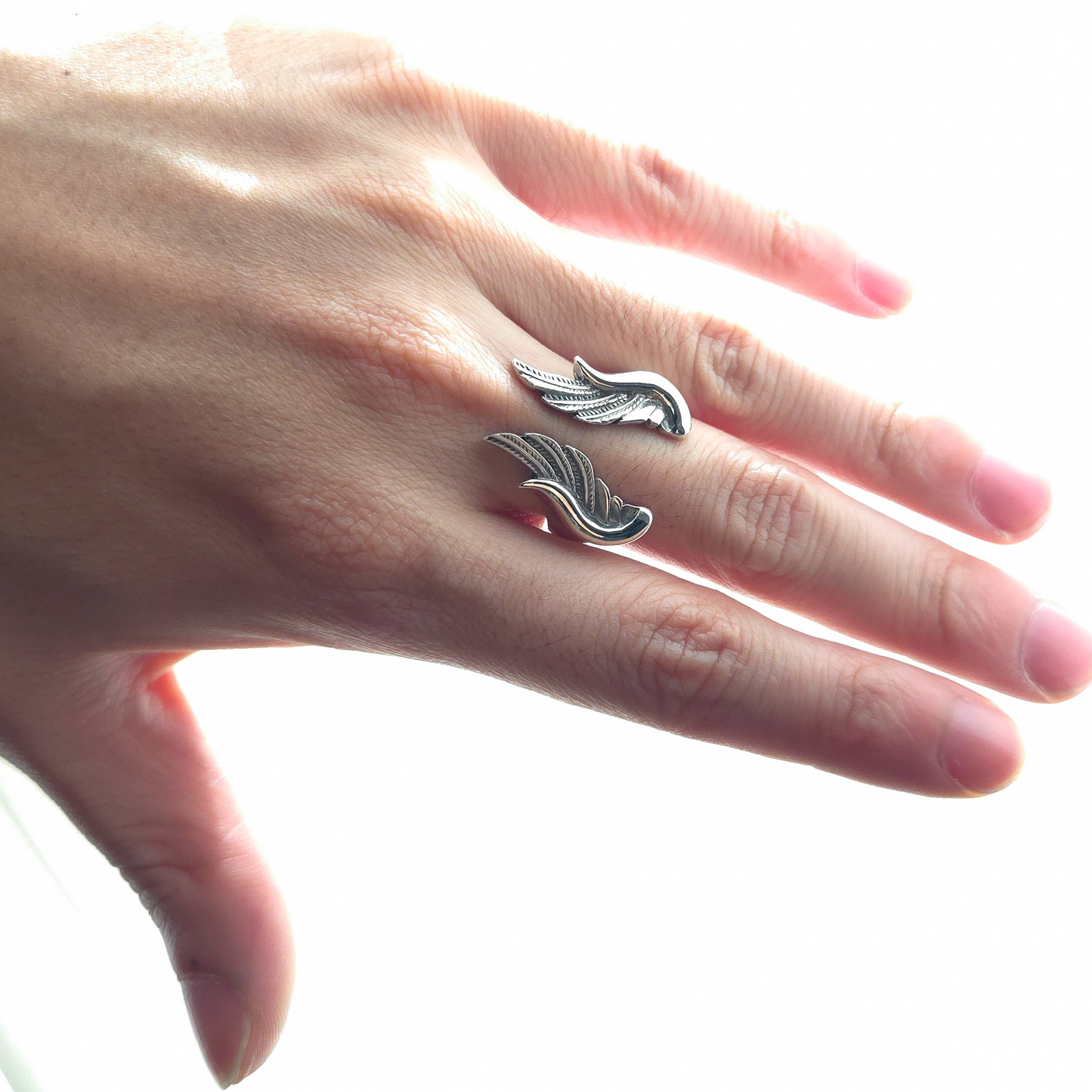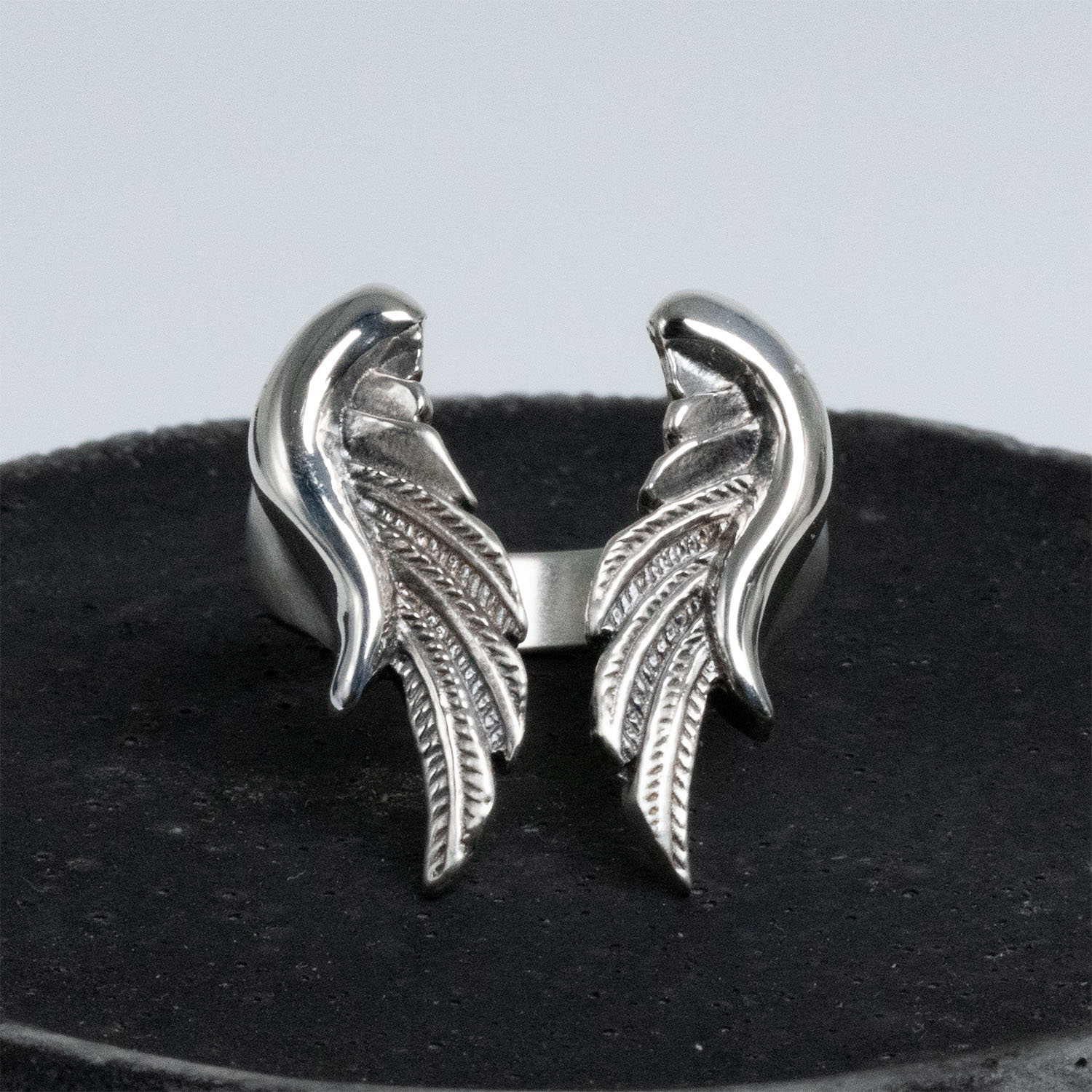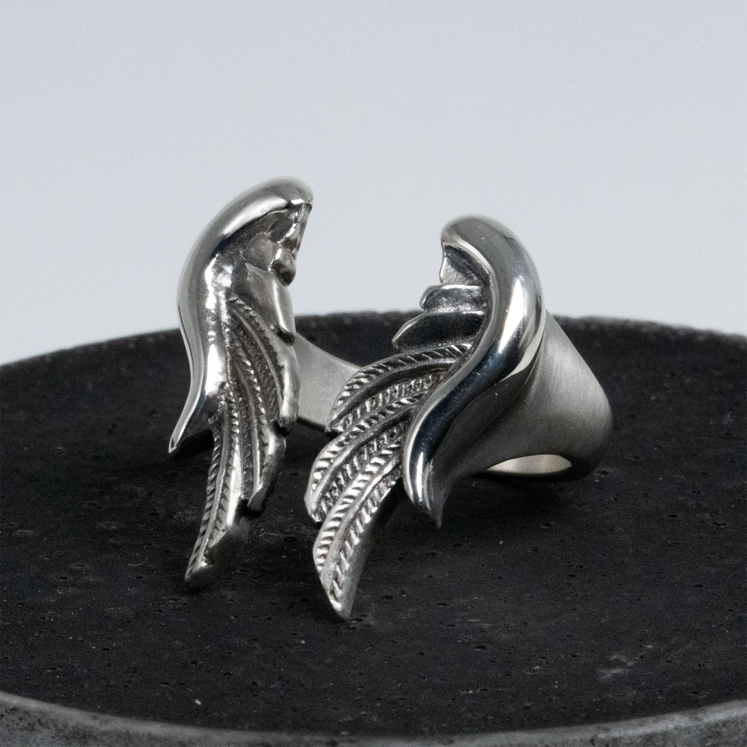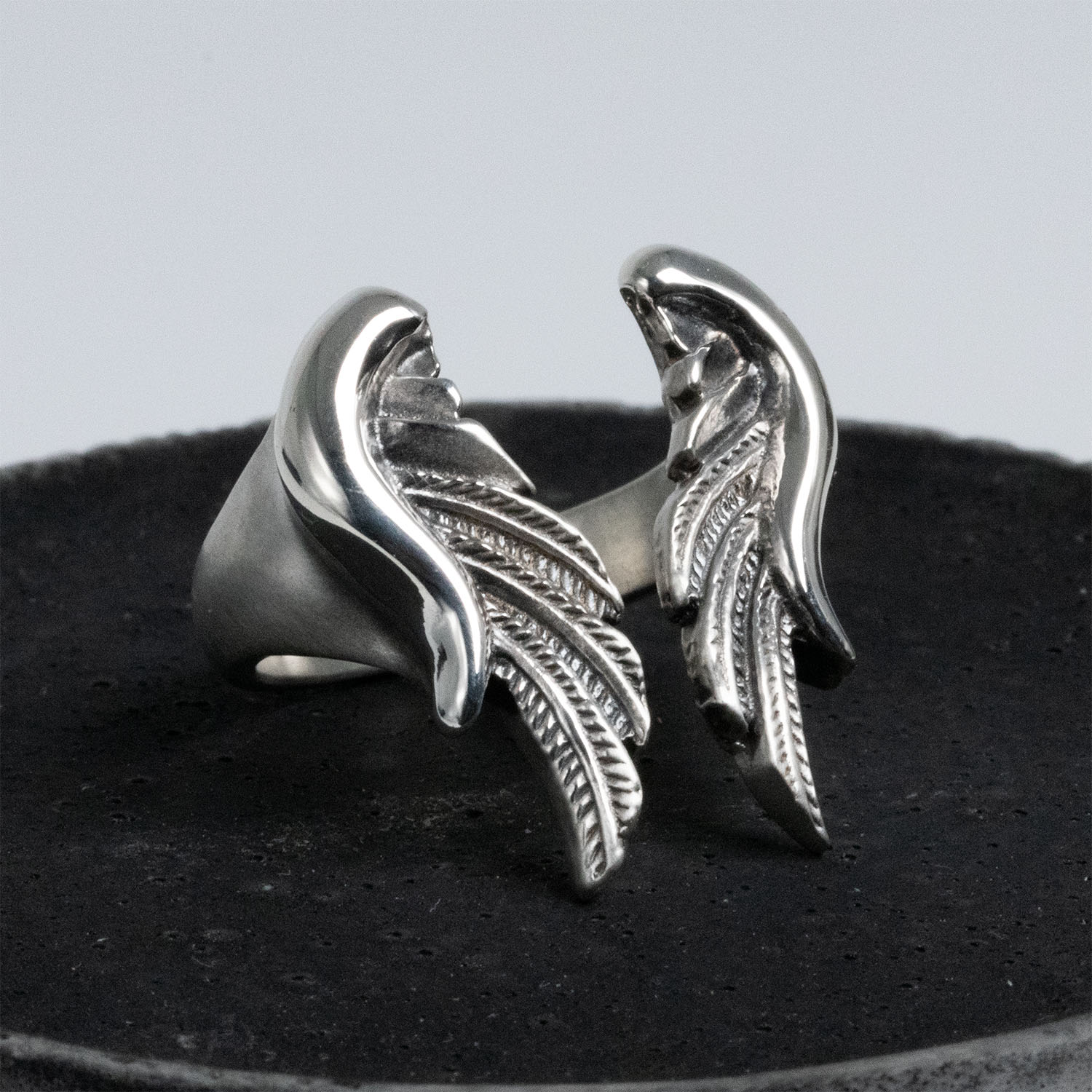 두 날개가 마주보며 손가락을 감싸는 오픈링으로,